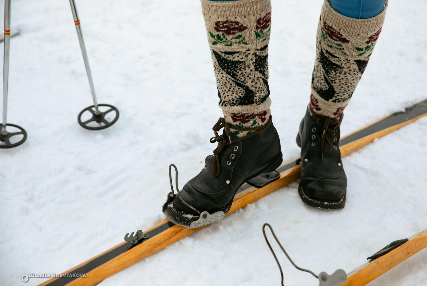 Уже второй год в рамках Народного лыжного праздника на Кургане проводится ретрогонка. Пятнадцать человек озадачились созданием образа и встали на деревянные лыжи, чтоб пробежать километр.