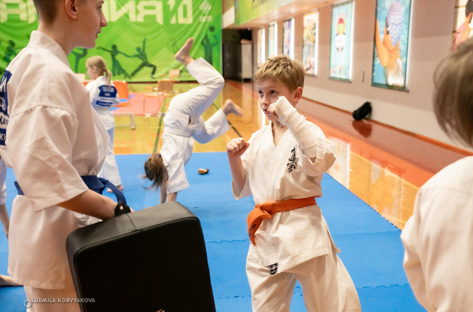 Юные и совсем взрослые спортсмены вышли на татами, чтоб показать четкие ката и яркие схватки кумитэ