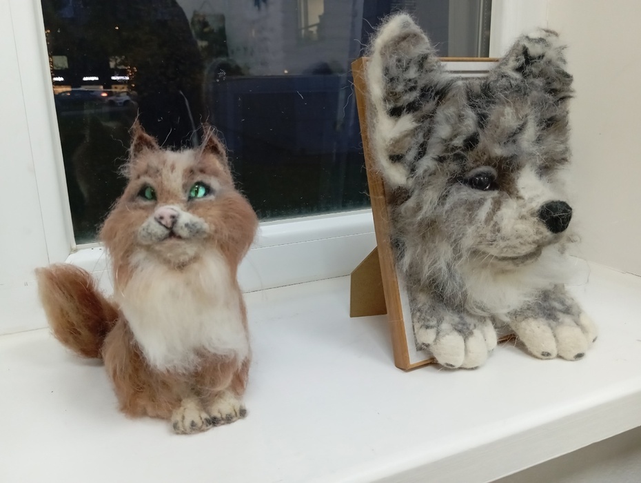 Экспонаты, представленные на выставке, исполнены в технике сухого и мокрого валяния.