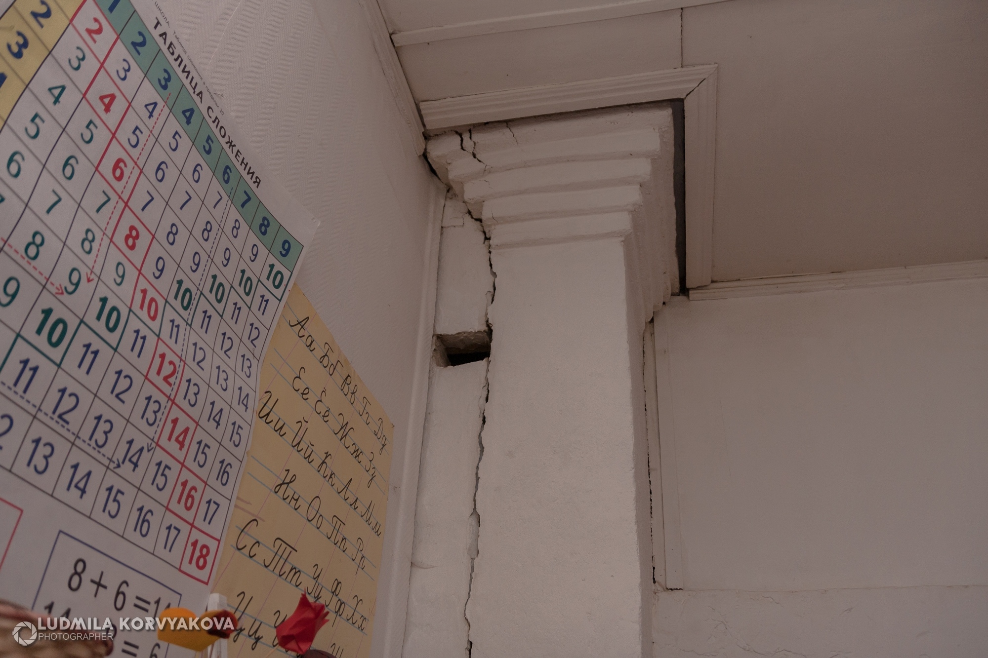 Перекошенные полы и гуляющие деревянные рамы окон: ученики изначально портят осанку на покатых поверхностях и зарабатывают болячки на сквозняках. И первоклашки, и выпускники зимой зачастую сидят в одежде, температура в классах, бывало, опускалась до + 8 градусов, из-за чего уроки приходится сокращать. В таких условиях школа подготовила троих медалистов.
