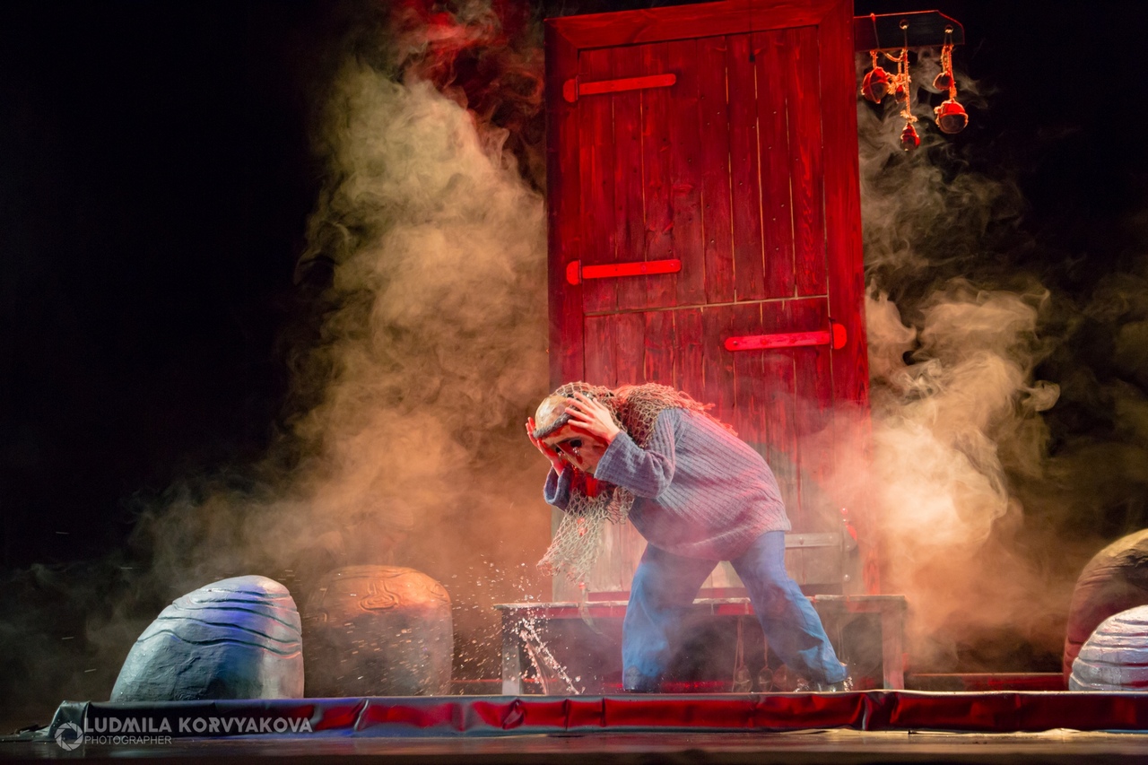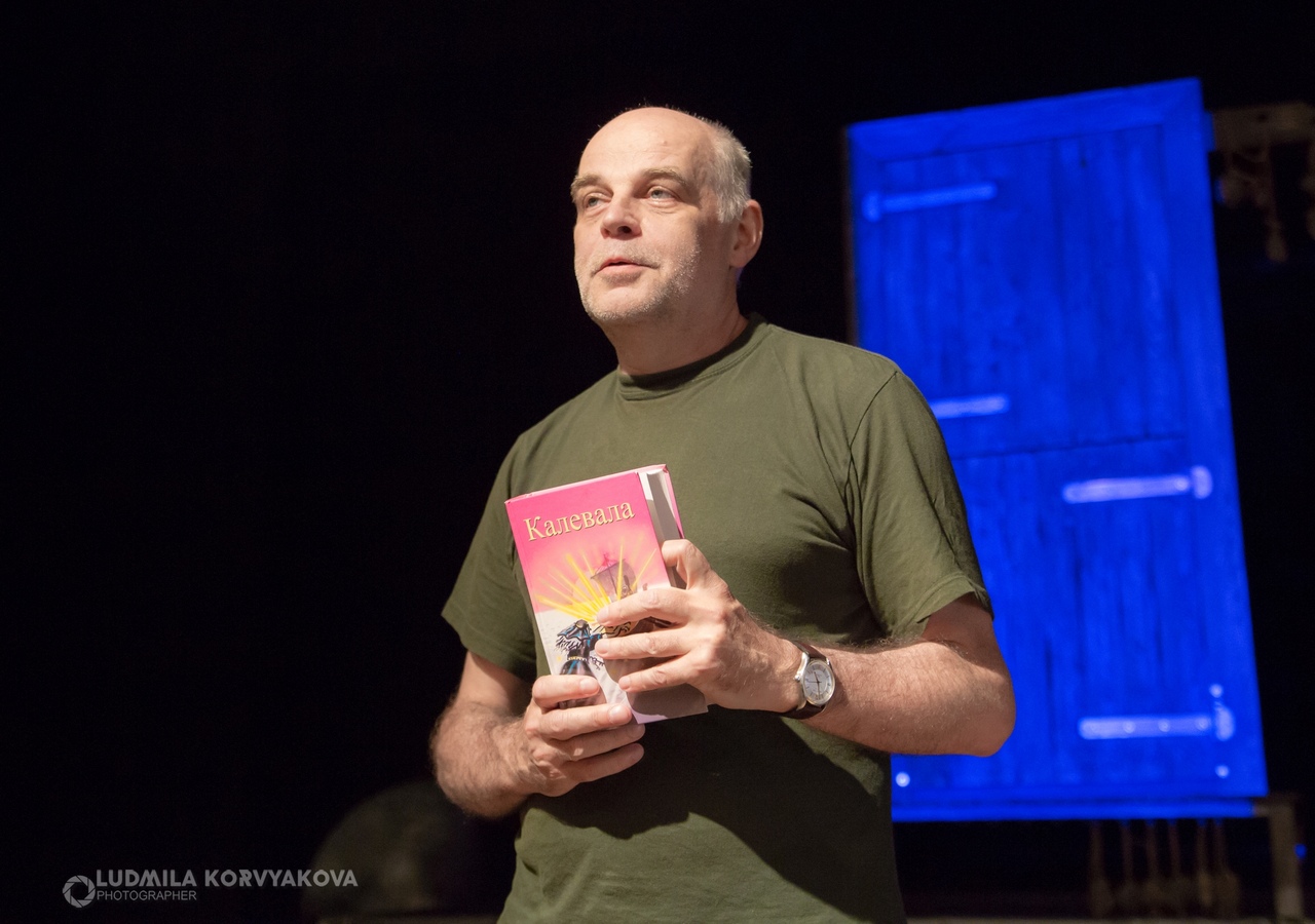 - Дым, красно-синий цвет, музыка, куклы, грубо вырубленные из дерева. Все артисты в резиновых сапогах и растянутых «рыбацких» свитерах. Пьеса по сюжету показалась мне очень похожей на мультфильмы про приключения трех казаков - тут также очень легко и с юмором описываются приключения трех карелов: Вяйнямёйнена, Илмаринена и Лемминкяйнена. Истории разные, но все взяты из рун Калевалы. Нет ни одного диалога, но вздохами, мимикой, жестами и действием очень понятно рисуется сюжет. В пьесе звучат только имена и иногда тяжелый двусмысленный вздох «Похъялааа». Поэтому вроде и на карельском, но все понятно.