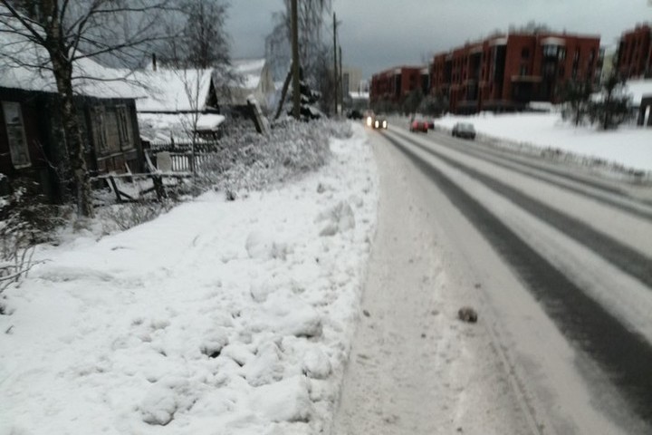 Петрозаводчане сетуют на то, что идти приходится по краю проезжей части, что, конечно, никак не согласуется с правилами дорожного движения, но прорваться через сугробы просто не получается.