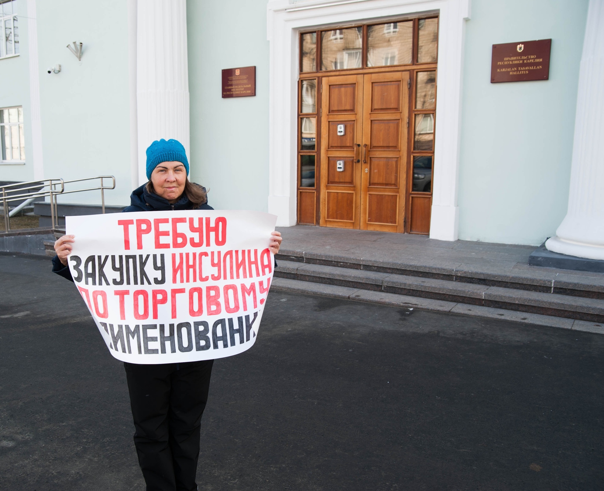 На одиночном пикете Ольгу сменила другая участница акции, она сама болеет диабетом. И ей тоже приходится покупать лекарства за свой счёт, а здесь уже другая сумма - 3000 рублей в месяц. Но она тоже не собирается переходить на российский инсулин, слишком мало информации по клиническим испытаниям и терапевтической эффективности нового препарата.