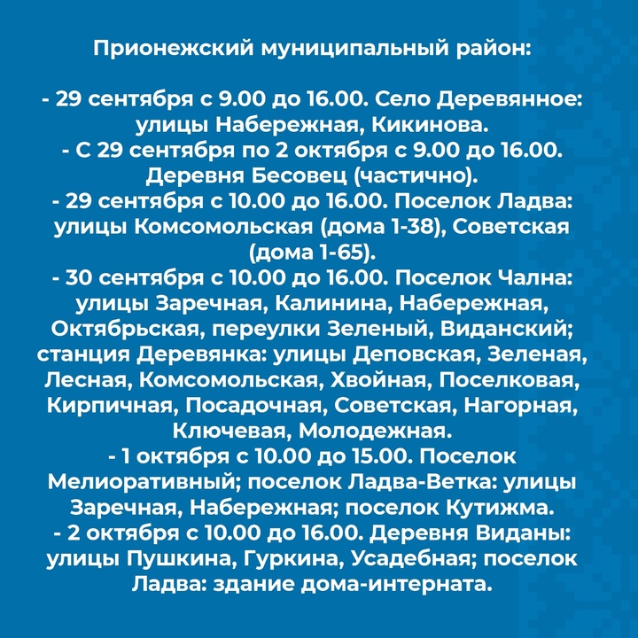 Более подробное расписание ремонтных работ публикуем ниже. Проверьте, нет ли вашего населенного пункта в данном списке.
