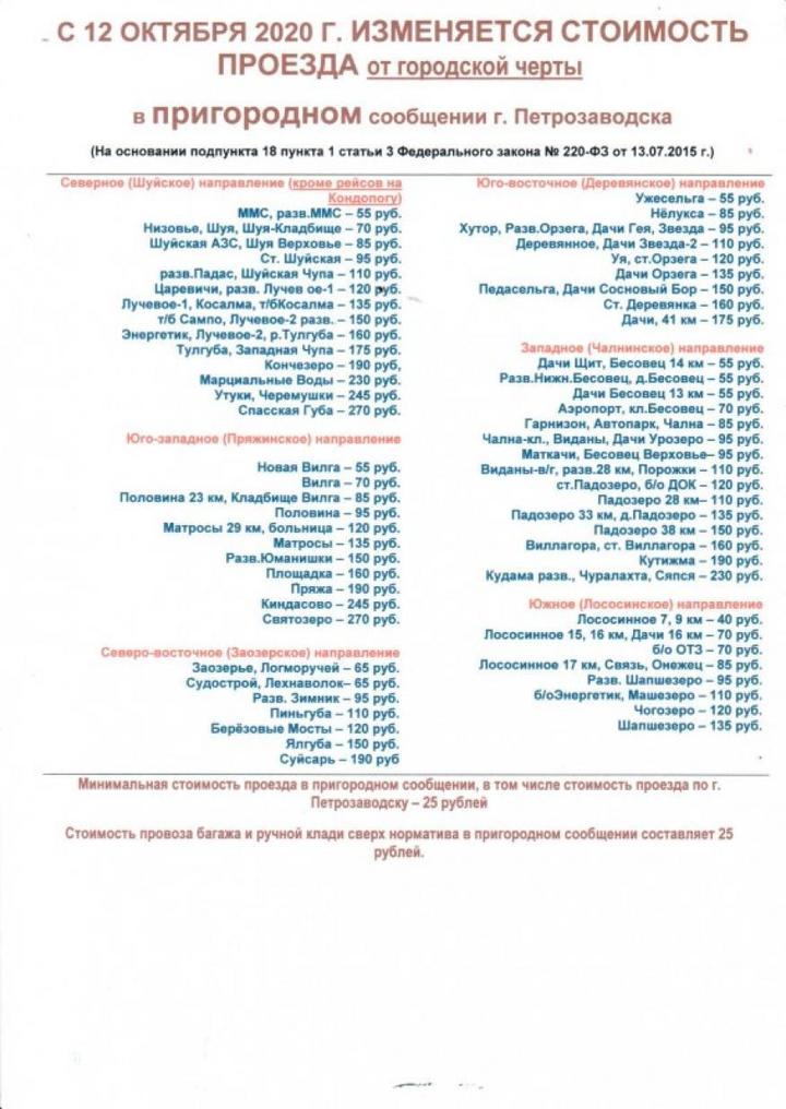 Минимальная стоимость проезда в пригородном сообщении, в том числе в Петрозаводске – 25 рублей. В такую же стоимость обойдется провоз багажа и ручной клади сверх норматива.