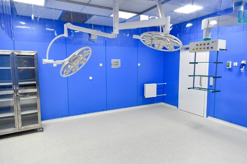 В непосредственной близости от противошоковой палаты находится современная противошоковая операционная, полностью соответствующая действующим СаНПинам. Имеется возможность для одновременной работы двух хирургических бригад в случае необходимости. Операционная оснащена ламинарным потолком, подающим очищенный воздух непосредственно в зону операции.