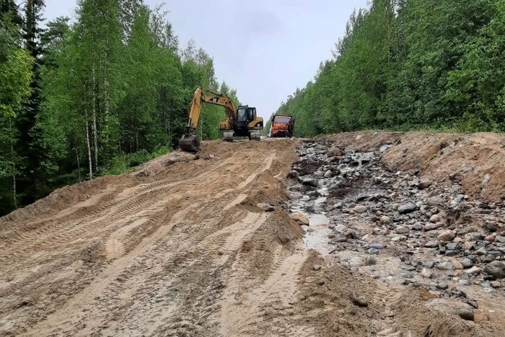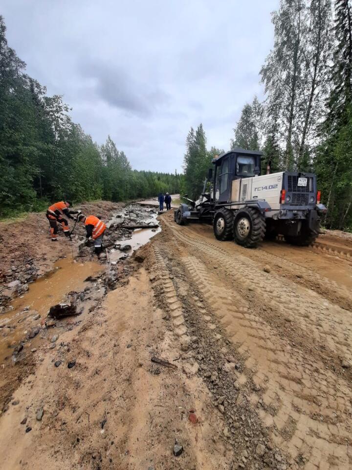 Размытый участок дороги Кепа – Юшкозеро – Боровой – Костомукша укрепляют. Движение транспорта временно осуществляется по одной стороне, сообщили в Минтрансе Карелии. Специалисты Лоухского ДРСУ обустраивают водопропускную трубу, досыпают земполотно и восстанавливают дорожную одежду.