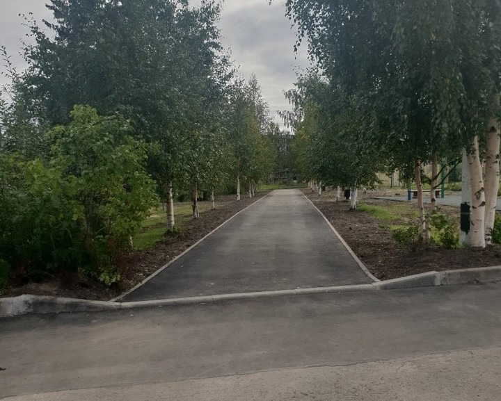 У ДК заасфальтировали пешеходную дорожку, уложили новый бордюрный камень, а также установили опоры освещения.