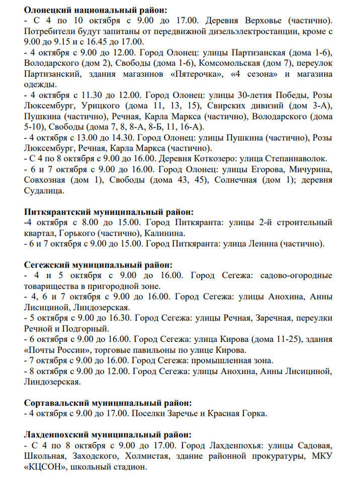 Работы запланированы на неделе с 4 по 10 октября в 13 районах республики. Перечень населённых пунктов, которые затронут временные отключения электроэнергии представлен ниже.
