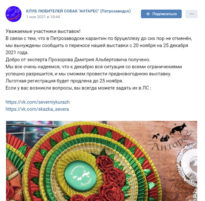 Пока петрозаводским клубам приходится переносить выставки, но они надеются, что хотя бы к декабрю ситуация разрешится.
