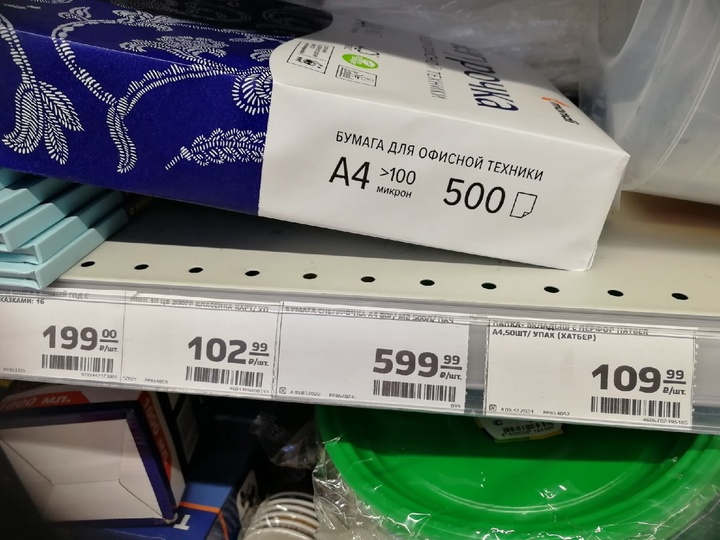 В начале года бумага стоила в 4 раза дешевле. Сейчас средняя цена подбирается уже к тысяче рублей за пачку, а магазины города отпускают не больше двух пачек в одни руки. В интернет-магазине дешевле купить не выйдет: на Ozon 500 листов продаются по внушительной цене.