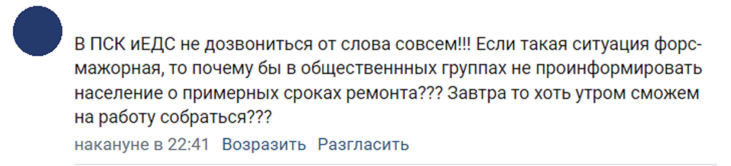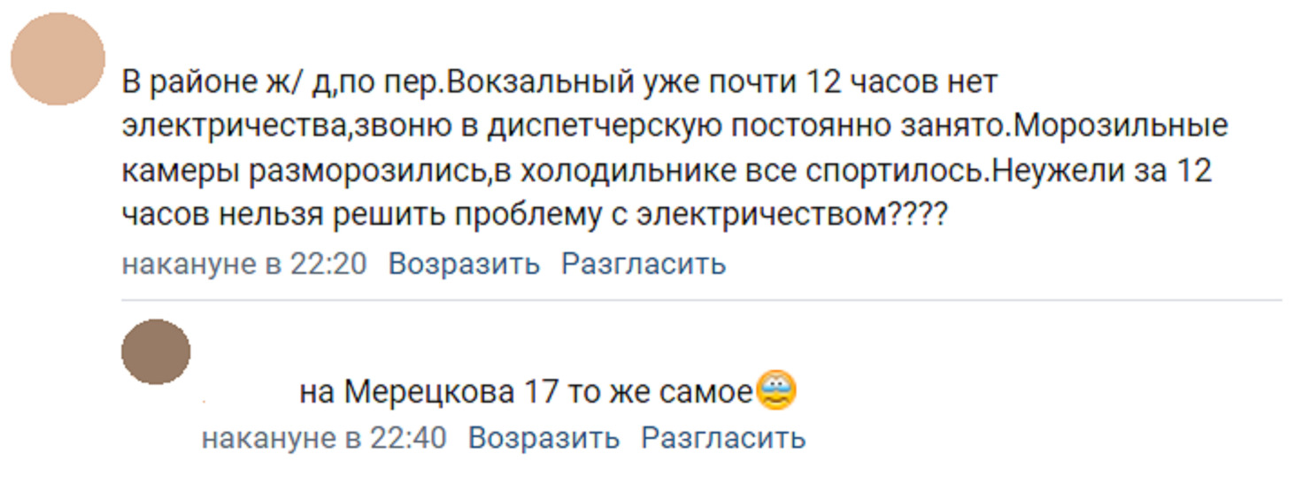 Жители Кондопоги вчера вечером в группе «Подслушано в Кондопоге» жаловались на отсутствие света за железнодорожным переездом. Сегодня в 9 часов утра они сообщили, что света нет до сих пор. В 12 часов электричество появилось. Одна из жительниц упомянула, что неоднократно звонила на телефон единой диспетчерской службы, но ответа не получила – линия все время занята.
