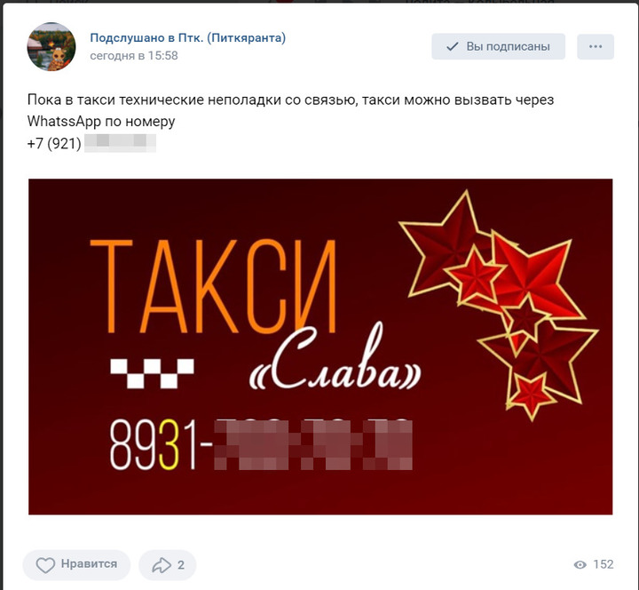 Помимо Петрозаводска, столкнулись с проблемой и жители других карельских городов. Так, в паблике «Подслушано в Питкяранте» появился пост о том, что сложно дозвониться до такси.