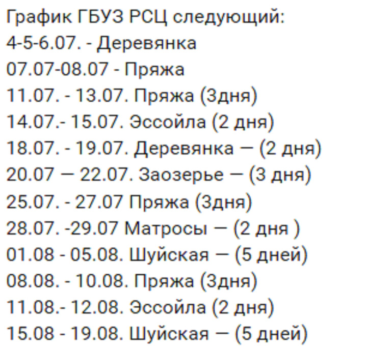 При этом в Минздраве Карелии предупредили, что график не окончательный и даты могут меняться. Также в министерстве уточнили, что с 22 по 26 августа планируется детский прием. Однако подробности пока неизвестны.