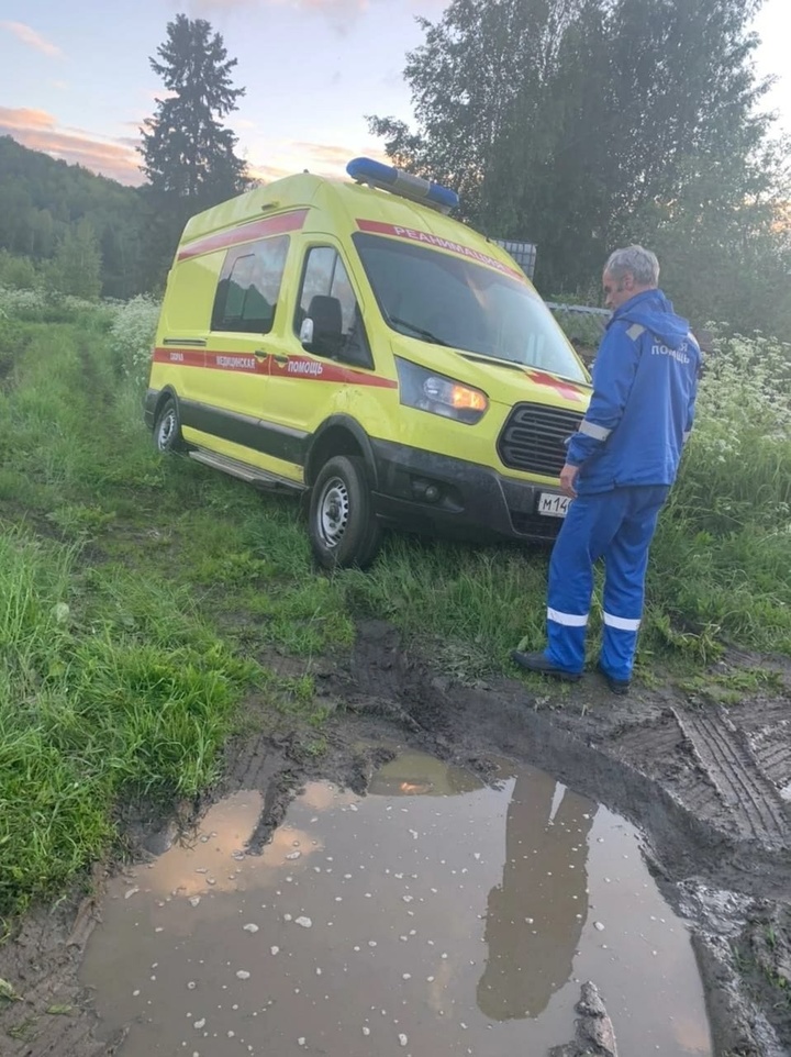 Супруга пациента Любовь рассказала нашему изданию, что они подробно объяснили диспетчеру маршрут, но «скорая помощь» преодолевала 27 километров пути целых 1,5 часа и все равно заехала не туда – водитель на перекрестке свернул налево, а не направо. Машина, разворачиваясь, застряла. Пешком по улице врач в белых кроссовках пройти не смогла – лужи по колено.