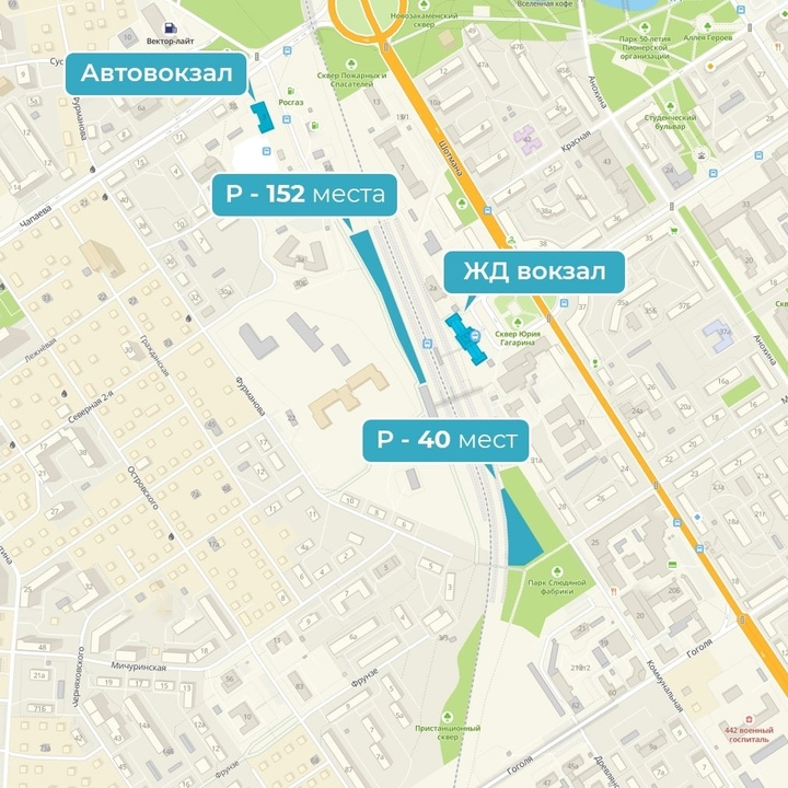 Более глобальное строительство парковки на 152 места намечается у пешеходного моста через железнодорожные пути. К ней оборудуют двухполосный проезд длиной в 500 метров с улицы Чапаева. Проект бесплатной парковки уже готов, сейчас его отдают на экспертизу, а в конце года ждут положительное заключение.