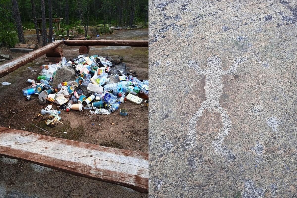 Неподалеку от одной из достопримечательностей республики: беломорских петроглифов, выбитых на скалах Залавруги, жительница Карелии обнаружила настоящую «стоянку современных людей». И это в 15 метрах от уникальной многофигурной композиции!