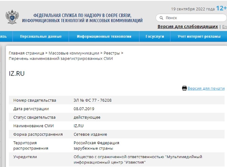А лицензии средства массовой информации, приведенные здесь же, на практике принадлежат другим СМИ.