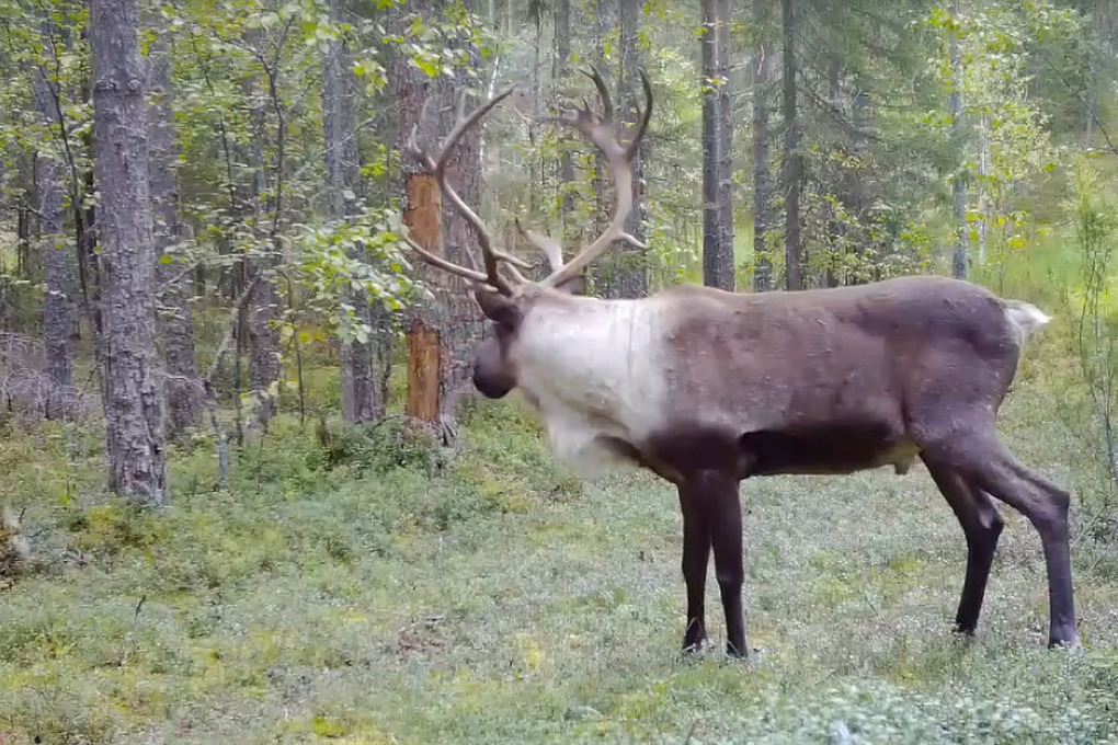 В группе заповедника “Костомукшский” опубликовали видео, на котором запечатлен обитатель карельских лесов с красивыми рогами. Олень медленно прошелся перед камерой, немного пожевал, думая о чем-то своем.