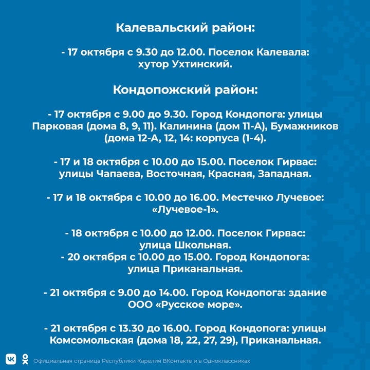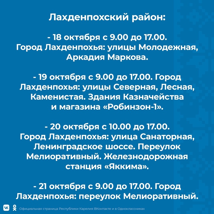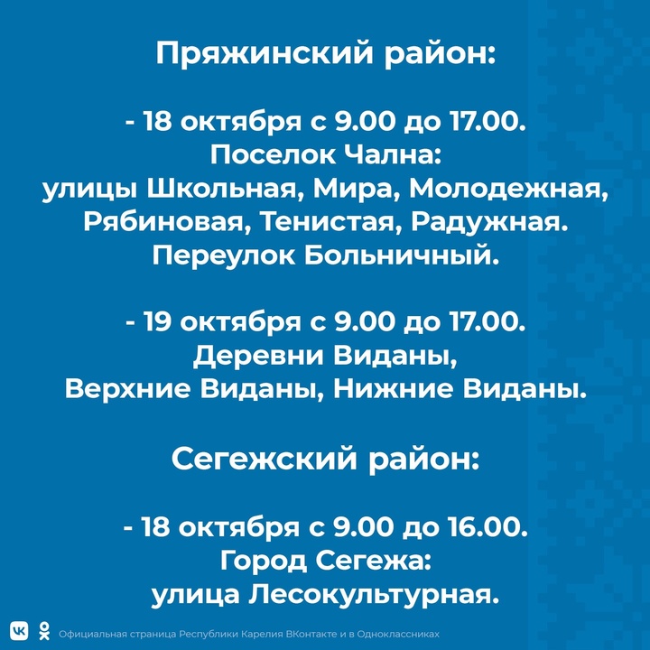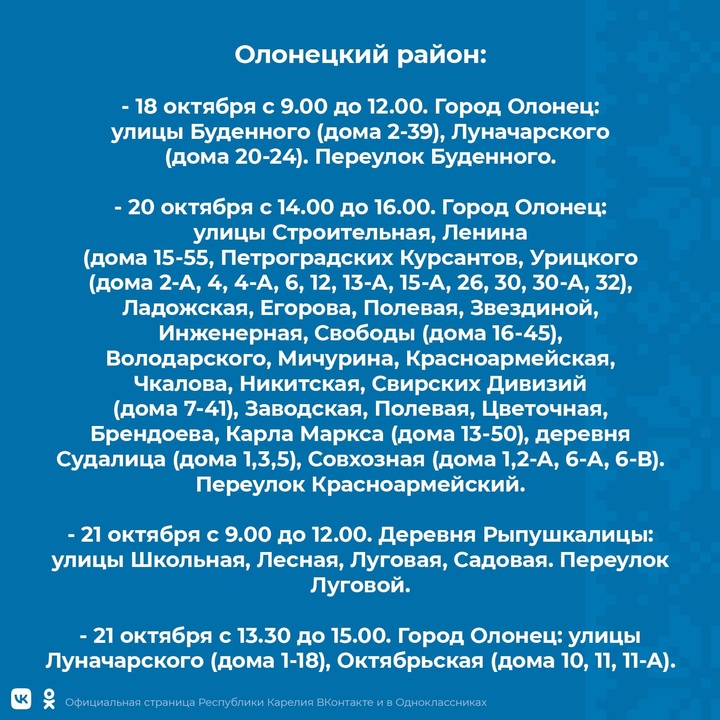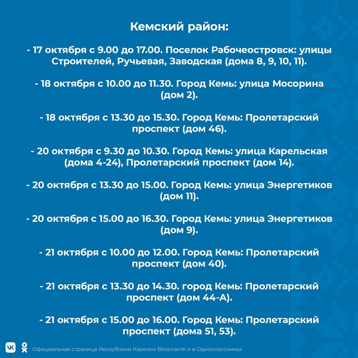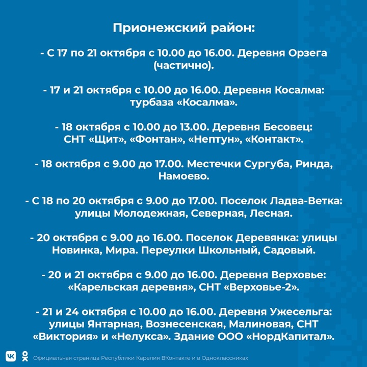 Очередные отключения электричества ожидают жителей Карелии в течение текущей недели. Об этом сообщили в официальном паблике Правительства Карелии.