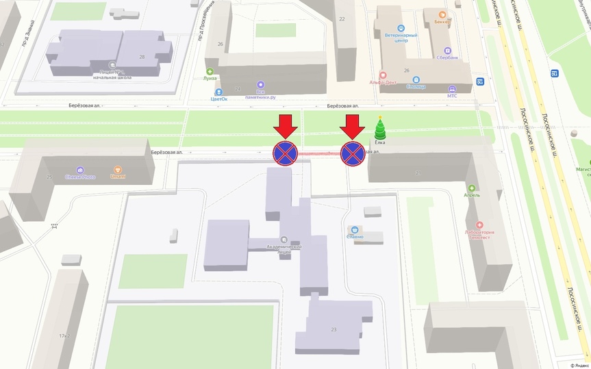 С 14 февраля у водителей не получится оставить автомобиль по нечётной стороне Берёзовой аллеи рядом с Академическим лицеем.