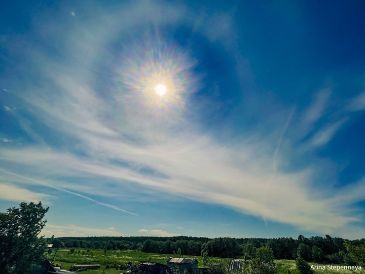 Фотограф Арина Степенная запечатлела 12 июня в небе над Карелией солнечное гало