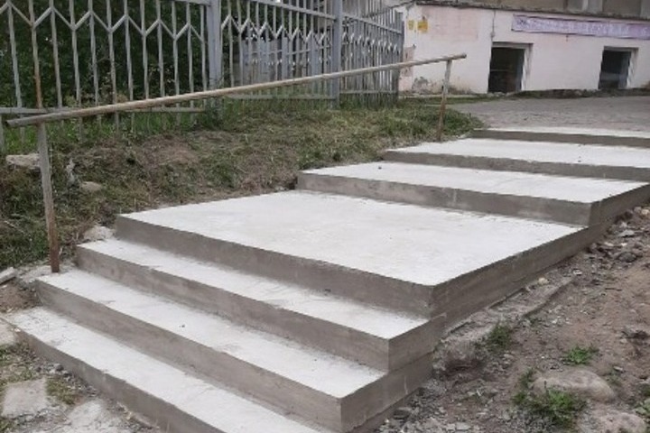 Подписчик группы «Подслушано в ПТЗ» возмутился «лестницей – убийцей» на Сорокской, 3. Судя по выложенным фото, рабочие отремонтировали лестницу на подъеме в горку, но не оборудовали ее пандусом для детских и инвалидных колясок. Также у новых ступенек не хватает перил.