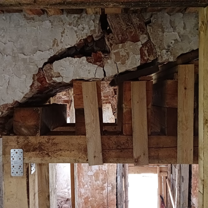 Следующим этапом ремонта станет изготовление деревянной конструкции поддерживающей свод. Также автор публикации пообещала выложить отдельный пост о том, как в храм завозили пиломатериалы через гать.