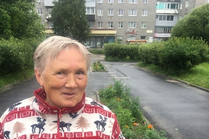 Пожилая жительница города в Карелии привела в порядок клумбу по дороге на работу