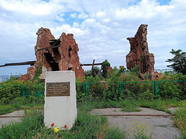 Но есть и другие места – они впечатляют иначе и сильнее. Например, небольшой монумент на самом обрыве Волги, на самом краю, где четверо связистов шесть недель держали пункт связи. Прямо возле этого обрыва и начиналась линия фронта. Здешние дома красного кирпича, некогда величавые, по сей день показывают «ссадины» на своих боках. Это следы давних ранений. Их надежно и крепко укрывает виноград. И уже не ясно, то ли это – повязка на старом шраме. То ли подпорка…