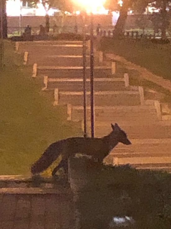 Жители Петрозаводска встретили лису в самом центре города. Подписчик группы «Подслушано в ПТЗ» увидел лесного хищника у Вечного огня на площади Ленина.