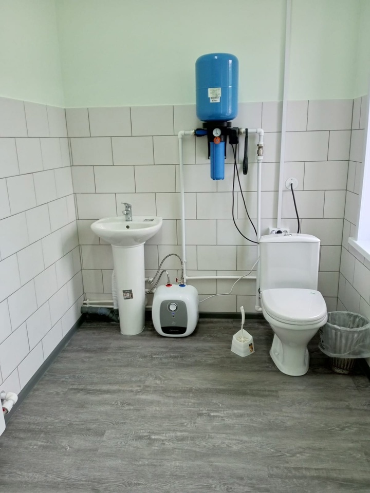 Рабочие произвели косметический ремонт внутренних помещений, полностью оборудовали санузел, кабинеты, установили современную систему подачи воды и канализации, а также заменили освещение на энергосберегающее.
