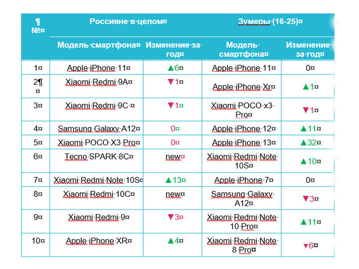 Самые популярные смартфоны по игровому трафику у абонентов Yota за 6 месяцев 2023 года