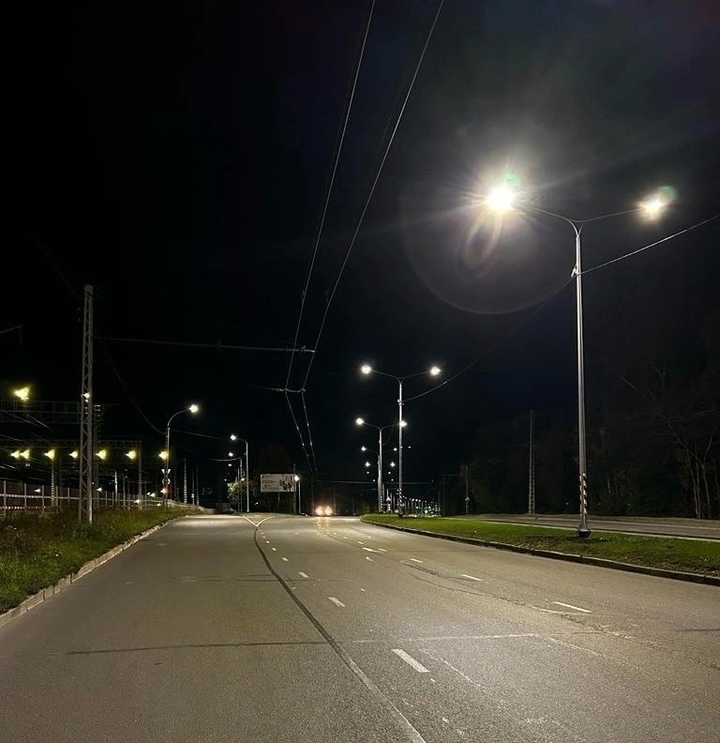 Рабочие установили 52 новых фонарных столба, смонтировали 102 светодиодных светильника и два шкафа управления.