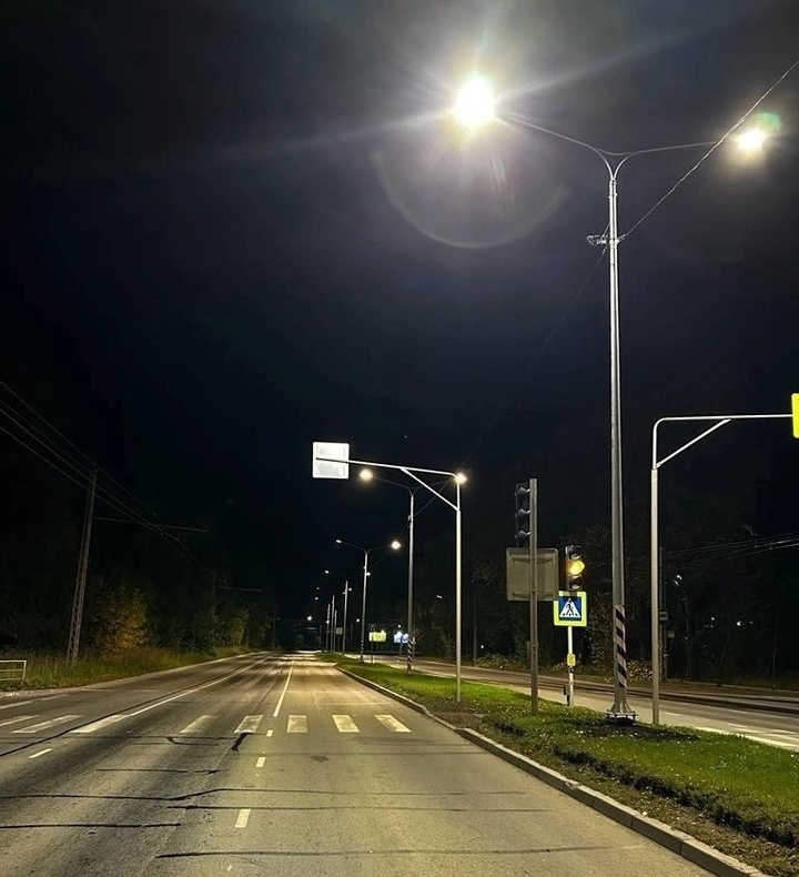 В администрации Петрозаводска сообщили, что на Первомайском проспекте установили новые фонари вдоль проезжей части.