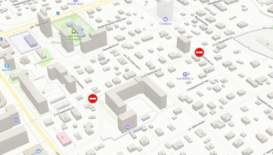 Несколько улиц в Петрозаводске перекроют из-за прокладки электроснабжения. Как предупредили в администрации города, с 29 сентября на три дня будет перекрыто движение по Гражданской улице в районе пересечения со 2-ой Северной улицей, а также на пересечении улиц Суворова и 2-ой Северной.