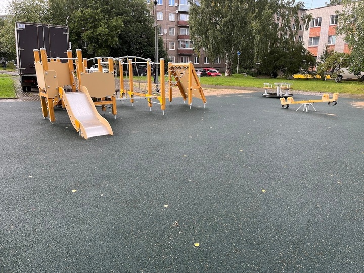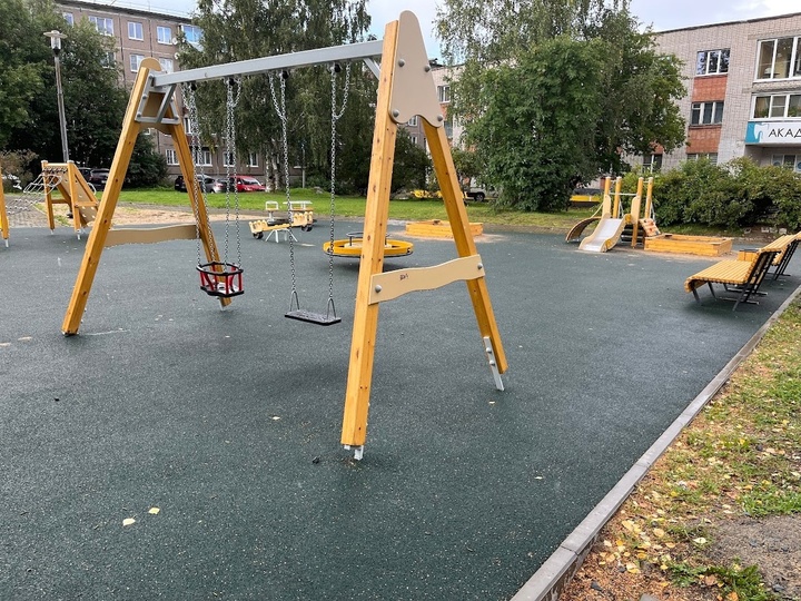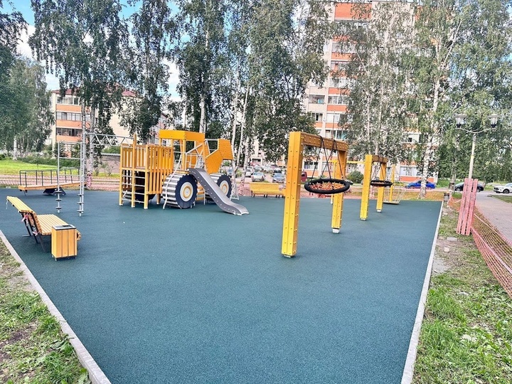Установлены две новые площадки, где уложено резиновое покрытие.