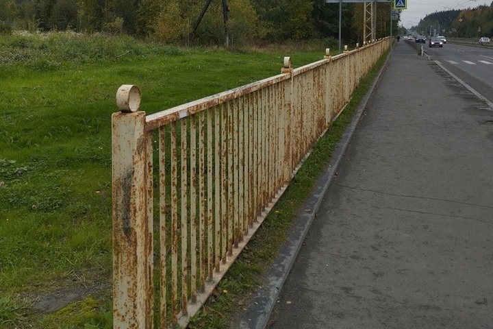 Житель Петрозаводска обеспокоен из-за ржавых заборов вдоль улицы Чапаева на Перевалке. На фото видно, что забор вдоль тротуара недалеко от Лесного проспекта был поставлен давно и уже пришел в неприглядный вид.