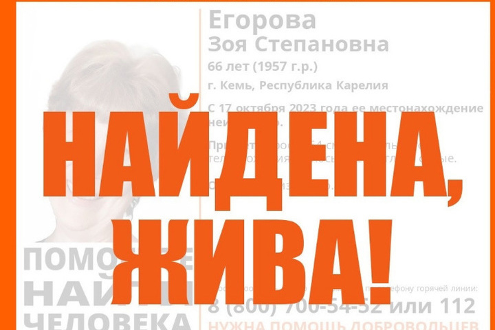 Как сообщается в паблике поисковиков "ЛизаАлерт", 66-летняя пенсионерка, пропавшая в Кеми 17 октября, найдена живой.