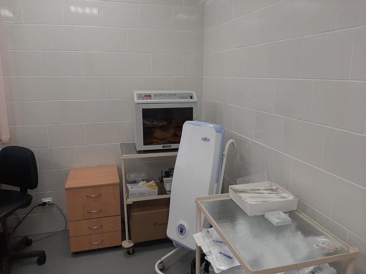 Сейчас специалисты приводят в порядок кабинеты врачей специалистов, кабинет сбора анализов на первом этаже, кабинеты функциональной диагностики и УЗИ, а также туалеты и санитарные комнаты. Рабочие меняют в здании коммуникации, электропроводку, двери и напольное покрытие.