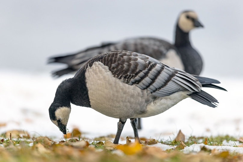 Известный фотограф Илья Тимин на своей странице ВКонтакте поделился фото стаи белощёких казарок, которые паслись на берегу Онежского озера в Петрозаводске.