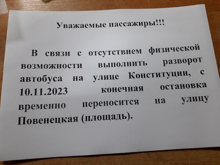 Как сообщили в паблике «Медвежьегорск Online», с 10 ноября конечной остановкой автобусов маршрутом Медвежьегорск – Пиндуши временно станет площадь на улице Повенецкая.
