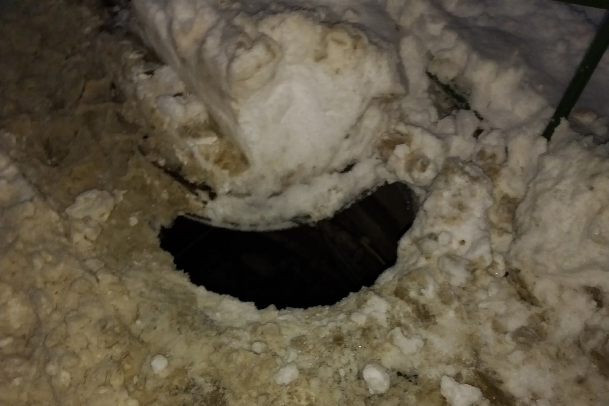 На фотографии, опубликованной местными жителями, видны следы уборочной техники, которая могла открыть люк ковшом.