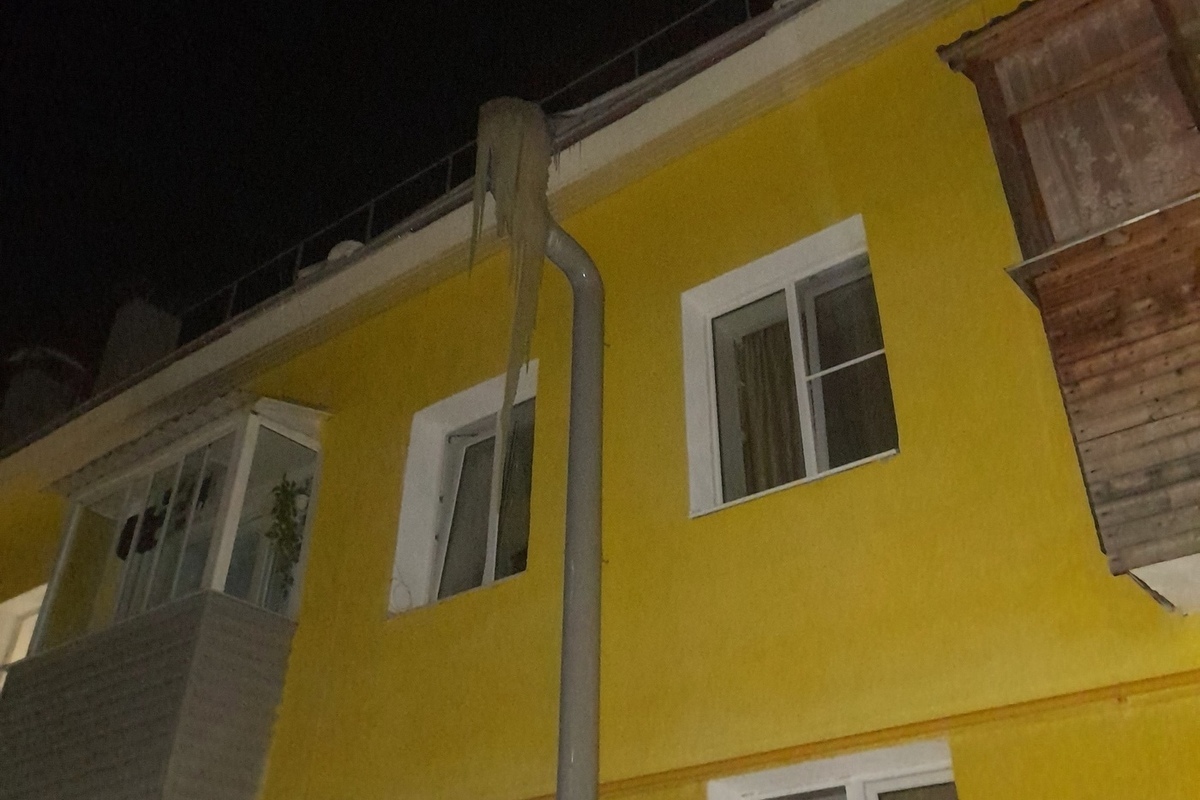 Как сообщили в паблике «Ключевая. Новости района», труба на фасаде дома №9 на улице Нойбранденбургская в Петрозаводске покрылась льдом и готова упасть в любой момент.