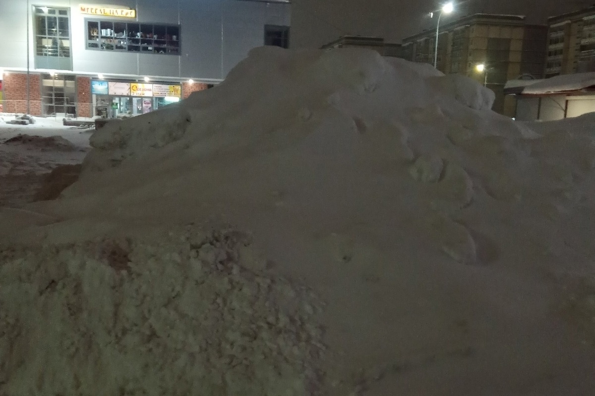 Горожанка поделилась фото, на которых видно, что по всей площади лежат горы с него, высота которых достигает двух метров и больше.