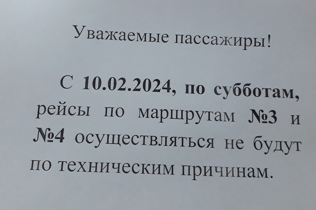Как сообщили в паблике «Медвежьегорск Online», с 10 февраля в Медвежьегорске временно перестанут ездить по субботам автобусы №3 и №4.
