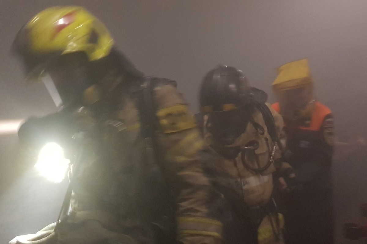 МЧС отработало условный «пожар» в торгово-развлекательном центре в Петрозаводске. Хотя пожар и был условный, дым в кинозале был самый настоящий. Спасатели были дотошны и выложились по-полной во всех смыслах. Взбегали на шестой этаж по лестницам, проверяли все закоулки, кабинеты и прочие помещения, выводили из зала подставных любителей кино.
