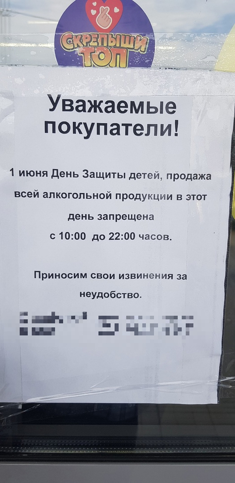 Работники магазинов Карелии напомнили посетителям, что 1 июня, в День защиты детей, с 10:00 до 22:00 нельзя будет приобрести спиртные напитки.
