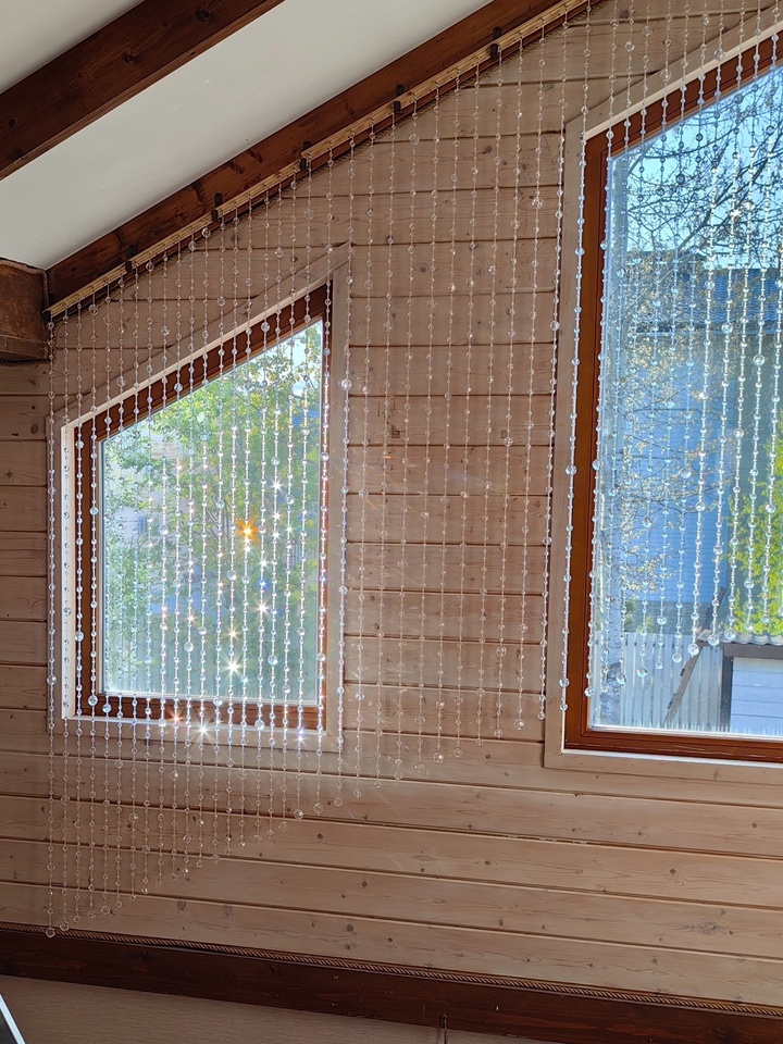 Эффект сверкающей водяной завесы помогут создать шторы из стеклянных бус. Такую штору можно повесить на окно вместо тюля, в дверной проем или использовать для зонирования больших помещений.