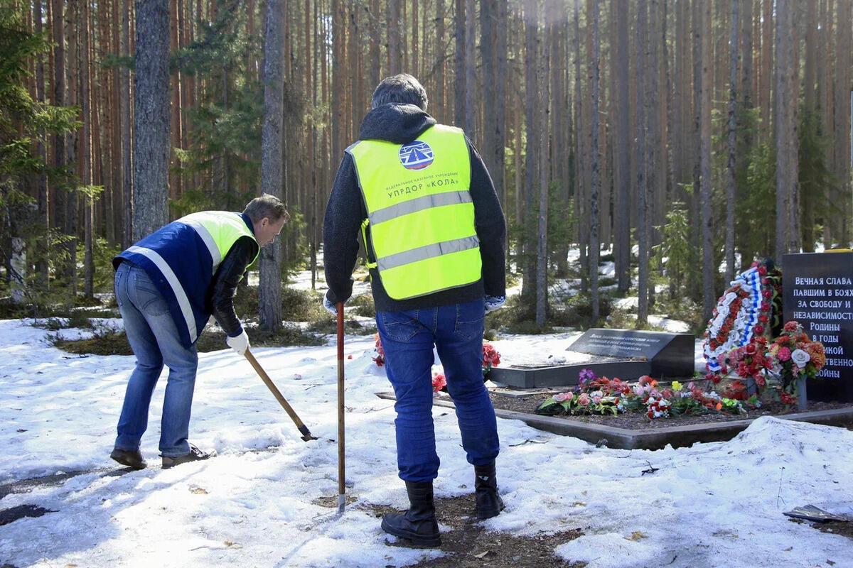 Специалисты ФКУ Упрдор «Кола» очистили территорию вокруг воинского мемориала в полосе отвода автодороги А-215 в Прионежском районе Карелии. Работы включали уборку остатков снега и льда, опавших листьев и веток, а также выгоревших мемориальных венков на братской могиле советских воинов и пешеходной дорожке к ней.